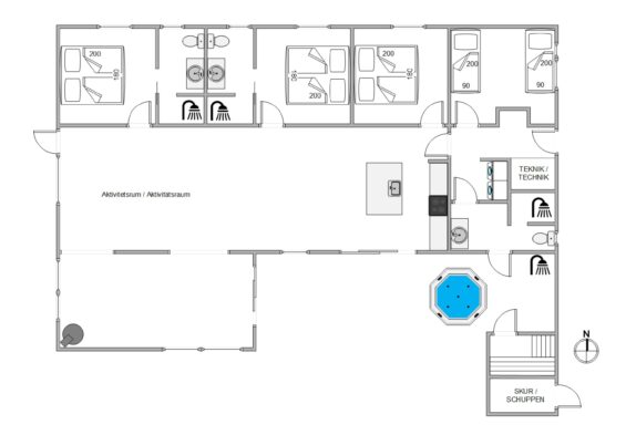 Im Außenbereich erwartet dich ein großer Whirlpool für bis zu 6 Personen und eine Sauna, in denen du dich herrlich entspannen kannst. Frische dich in der Außendusche auf, bevor du den Grill anzündest und köstliche Speisen zubereitest. Wenn du gerne aktiv bist, wirst du die Freizeitmöglichkeiten in diesem Aktivitätshaus lieben – durch Poolbillard und Tischtennis ist endloser Spaß garantiert. Und mit einem kurzen Spaziergang von nur 900 Metern bist du direkt am Strand und kannst das Küstenflair von Nr. Lyngvig in vollen Zügen genießen.