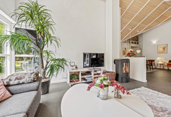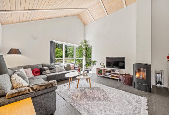 Im gemütlichen Wohnzimmer sorgt ein Holzofen für Wärme und Atmosphäre an kalten Tagen oder wenn ihr es euch nach erlebnisreichen Urlaubstagen in der Umgebung einfach auf dem Sofa gemütlich machen wollt. Plane die nächsten Ausflüge oder führe bei einem Glas Wein oder einer Tasse Bier gute Gespräche mit euren Lieben und genieße die Zeit, die ihr für euch habt.