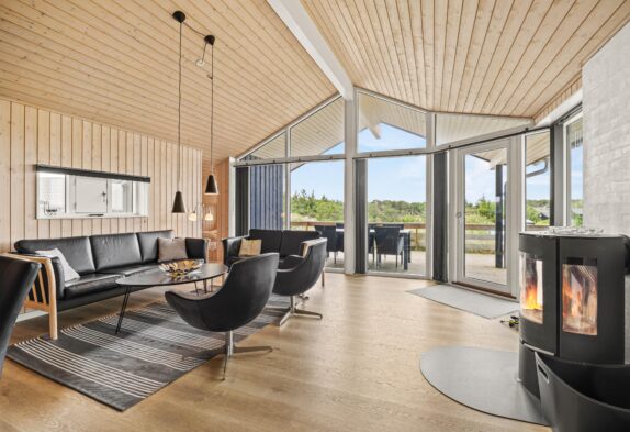 Der Wohnbereich ist mit einem einladenden Holzofen ausgestattet, der ruhevolle Stunden und wohlige Wärme verspricht, besonders an kühleren Abenden. In bequemen Sofa- und Sesselgruppen könnt ihr entspannen, lesen oder einfach nur die gemeinsame Zeit genießen. Die Einrichtung strahlt Ruhe und Behaglichkeit aus, sodass ihr euch gleich wohlfühlen werdet. Um im Wohnbereich ein konstantes und angenehmes Raumklima zu schaffen, wurde eine energiesparende Luft-zu – Luft Wärmepumpe installiert.