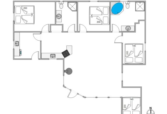 Drei Schlafzimmer bieten den idealen Rückzugsort nach einem erlebnisreichen Tag am Strand. Die Schlafzimmer sind je mit einem Doppelbett a´140 x 200 m ausgestattet, sodass alle Gäste hier einen angenehmen Schlaf finden. Für zusätzliche Übernachtungsmöglichkeiten stehen zwei Schlafnischen bereit. Zwei moderne Badezimmer ermöglichen euch die tägliche Erfrischung und Entspannung, wobei eines der Bäder mit einem Whirlpool ausgestattet ist. Eine Fußbodenheizung sorgt dabei für ein angenehm warmes Ambiente. Die praktischen Alltagshelfer, die Waschmaschine und der Trockner, stehen euch zur Verfügung, sodass ihr nur eure Lieblingskleidung einpacken müsst.
