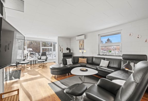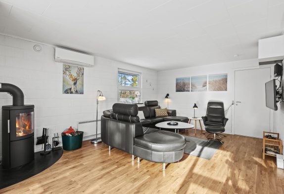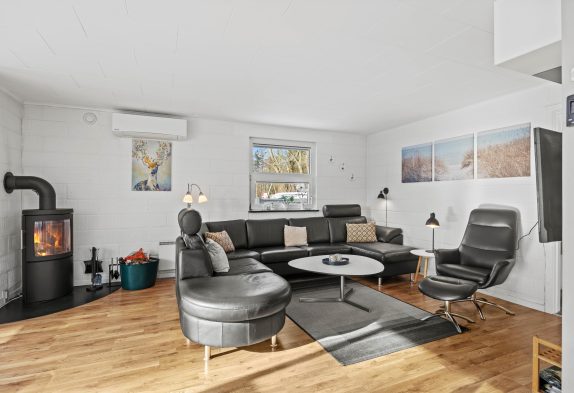 Mit insgesamt 93 m² Wohnfläche bietet das Ferienhaus ein einladendes Wohnzimmer, in dem ein Kaminofen für warme, gemütliche Abende und eine angenehme Atmosphäre sorgt. Die 3 Schlafzimmer des Hauses verfügen über 1 Doppelbett und 4 Einzelbetten, ideal für bis zu 6 Personen – perfekt für größere Familien oder Gruppen, die Zeit miteinander verbringen möchten.