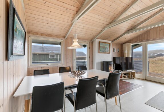 Ein gemütliches Ferienhaus in beliebten Urlaubsort Bjerregård, welches ca. 15 km südlich von Hvide Sande liegt, findet ihr auf Bjerregårdsvej 410. Von hier sind es nur 150m zum weiten Sandstrand und die Umgebung ist von wundervoller Natur und viel frischer Luft geprägt. Das Ferienhaus ist von mehreren Terrassen umgeben, die sowohl abgeschirmt als auch überdacht sind. Nach einem schönen Tag am Strand der dänischen Westküste könnt ihr euch am Kamin oder in der Sauna entspannen. Eure 2 Hunde sind ebenfalls herzlich Willkommen.