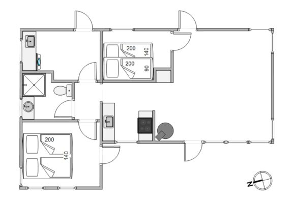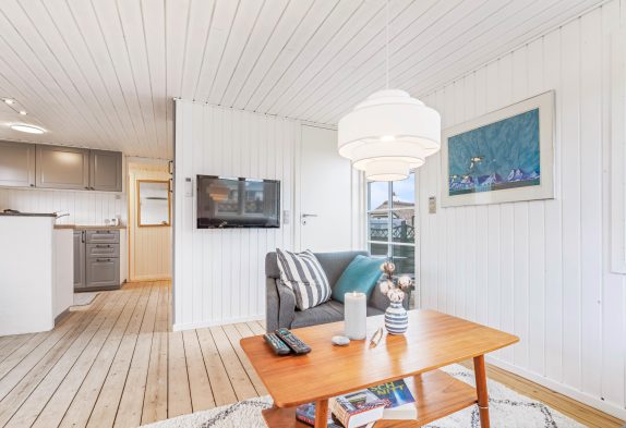 Die offene und gut ausgestattete Küche ist direkt mit dem Wohn – und Essbereich verbunden, was es euch ermöglicht, selbst beim Kochen, eure gemeinsame Zeit bestens zu nutzen. Um den anschließenden Abwasch kann sich der Geschirrspüler kümmern. Es gibt 1 Badezimmer mit Fußbodenheizung und 2 Schlafzimmer. Das große Schlafzimmer verfügt über ein Doppelbett und das kleinere Schlafzimmer ist mit einem Etagenbett ausgestattet. Im unteren Teil des Etagenbettes können sogar 2 Personen schlafen, während im oberen Teil Platz für ein Kind ist. Neben dem Badezimmer gibt es einen extra Raum, in dem es eine Waschmaschine gibt und genügend Platz, damit ihr eure Koffer und andere Dinge aufbewahren könnt.