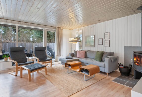 Euer Ferienhaus steht sehr geschützt auf einem natürlich abgeschirmten Grundstück am Sigfred Jensensvej. Zum Kaufmann sind es nur wenige Gehminuten; dort könnt ihr morgens frisches Brot vom lokalen Bäcker bekommen. Die Terrasse ist absolut geschützt und mit Gartenmöbeln, Liegestühlen und GasGrill ausgestattet. Auf der Grasfläche ist viel Platz für Spiele – mit und ohne Ball.