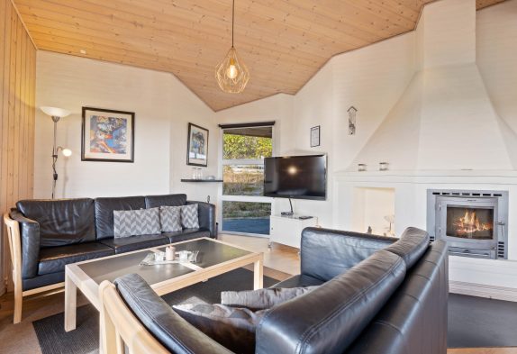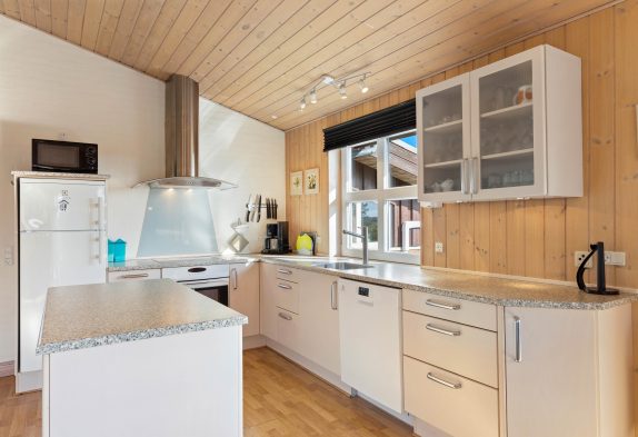 Das Haus ist schön hell eingerichtet. Die offene Küche ist mit dem Wohnraum verbunden und bildet somit das Herz des Hauses. Von hier aus hast du direkten Zugang auf die große Holzterrasse. Der Kamin sorgt für eine gemütliche Atmosphäre im Haus. Damit ihr im gesamten Ferienhaus eine stabile Internetverbindung habt, hat der Eigentümer 3 Strong Atria WIFI Mesh Home Kit 1200 Einheiten im Ferienhaus verbaut.