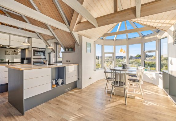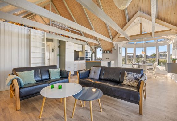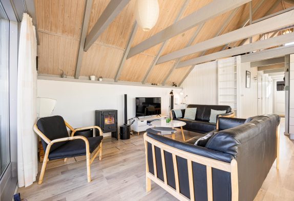 Das Ferienhaus ist sowohl gemütlich als auch modern eingerichtet und verfügt über ein großes, offenes Wohnzimmer mit Küche, einer guten Essecke und einem Zugang vom Wohnzimmer zur schönen Holzterrasse. Das Ferienhaus ist hell eingerichtet und verfügt über 3 Schlafzimmer – 2 davon sind mit jeweils einem Doppelbett und das dritte Zimmer mit Einzelbetten ausgestattet, was ideal für die Kinder der Familie ist. Darüber hinaus verfügt das Ferienhaus über ein schönes Badezimmer mit Fußbodenheizung.