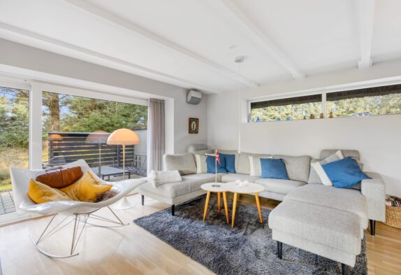 Überall gibt es große Fenster, damit alles schön hell ist und du die schöne Natur und das Grundstück genießen kannst.