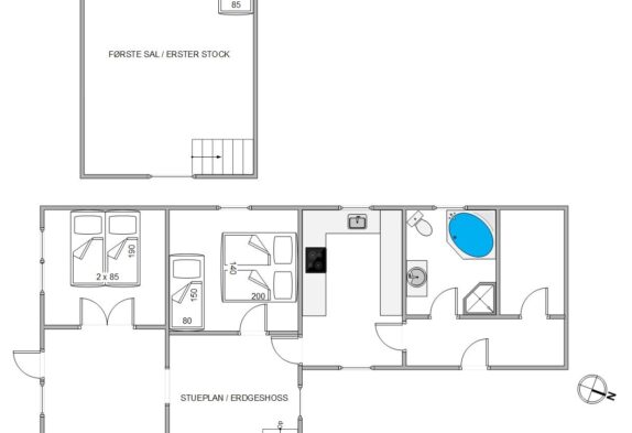Ein wirklich gemütliches und sehr charmantes Ferienhaus findet ihr hier im Drewsensvej 12 an der dänischen Westküste. Bis zu 6 Personen und 2 Hunde sind hier herzlich Willkommen. Das Ferienhaus ist ausgestattet mit Küche, Badezimmer mit Fußbodenheizung und Whirlpool, sowie einem großen, gemütlichen Dachzimmer mit viel Platz für Gemütlichkeit in geselliger Runde.