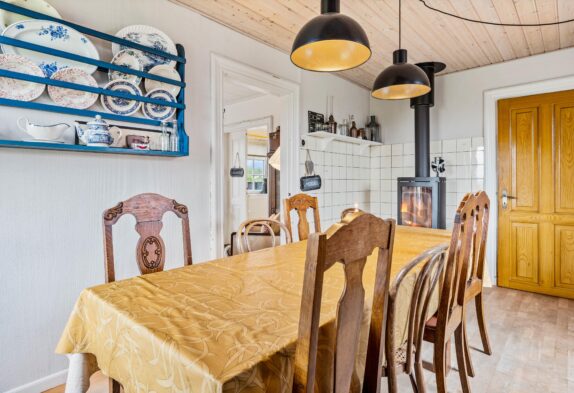 Hier steht ein Holzofen, der euch nach einem schönen Strandspaziergang wieder aufwärmt. Außerdem verfügt das Ferienhaus auch über eine energiesparende Wärmepumpe, die ihr zum Heizen nutzen könnt. Die gepflegte Küche lädt zum Kochen ein. Hier könnt ihr auch gerne einmal ein dänisches Rezept ausprobieren. Im praktisch ausgestatteten Badezimmer mit Fußbodenheizung lädt der Whirlpool zum Entspannen im heißen Wasser ein.