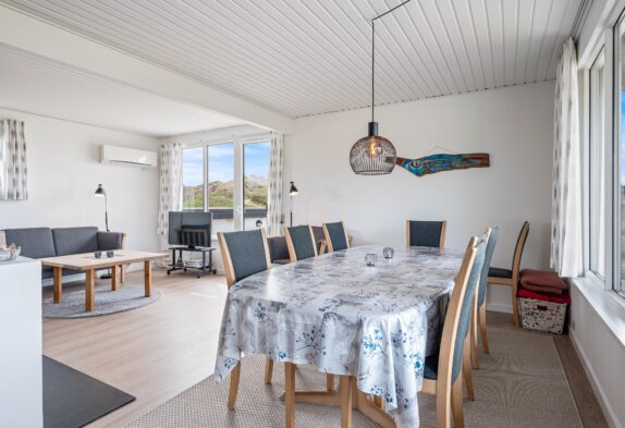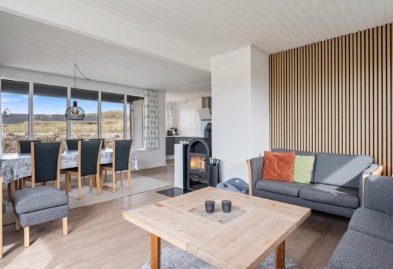 Dieses schöne Ferienhaus wurde mit vielen hellen Farben gestaltet. Durch die zahlreichen Fenster kommt viel Licht ins Innere und ihr könnt den Ausblick auf die Dünenlandschaft genießen. Macht es euch auf dem Sofa bequem, lest euer Lieblingsbuch und genießt die gemütliche Atmosphäre beim Knistern des Kaminfeuers. Auch die energiesparende Wärmepumpe steht euch zum Heizen zur Verfügung.