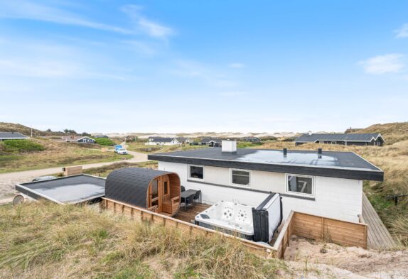 Eingebettet in einem 3400 qm großen Dünengrundstück, liegt euer Ferienhaus ganz idyllisch und bietet von der teils überdachten Terrasse eine schöne Aussicht in die Natur. Lehnt euch in den bequemen Terrassenmöbeln zurück und genießt die frische Meeresluft. Auch ein geselliger Grillabend bietet sich an. Zum Abschluss des Tages solltet ihr auch mal ein Bad im warmen Whirlpool probieren, während die Sonne hinter den Dünen untergeht.