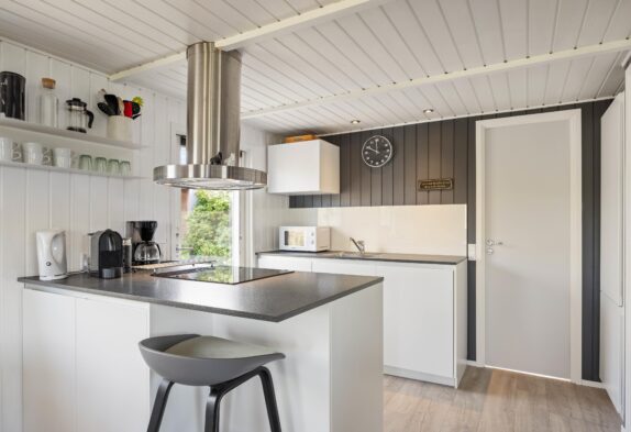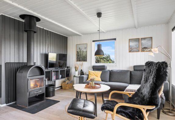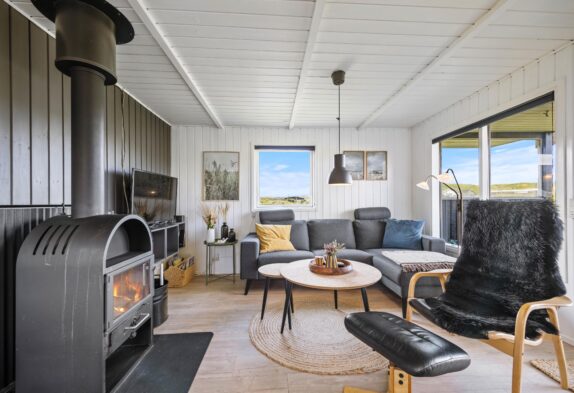 Besonders in dem gemütlichen Wohnbereich könnt ihr abends mit einem Buch oder bei einem Film entspannen. Hier findet ihr auch den Kaminofen, der nicht nur Wärme spendet sondern auch für die richtige Urlaubsstimmung sorgt.