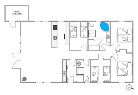 Es gibt es vier Schlafzimmer mit zwei Doppel- und vier Einzelbetten. Die zwei Badezimmer sind je mit einer Fußbodenheizung ausgestattet, sodass kalte Füße in diesem Urlaub kein Thema sind. Eine Sauna lädt zum Verweilen und Erholen nach einem ereignisreichen Tag am Strand ein. Im Whirlpool könnt ihr mal abtauchen und die Seele baumeln lassen. Damit ihr vor der Anreise nicht in den Packstress geratet, steht euch im Ferienhaus eine Waschmaschine und ein Trockner zur Verfügung.