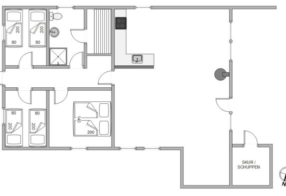 Darüber hinaus stehen Fernseher, Stereoanlage und eine drahtlose Internetverbindung gratis zur Verfügung. Die drei gemütlichen Schlafzimmer sind mit komfortablen Federkernmatratzen (1 Doppelbett und 2×2 Einzelbetten) ausgestattet. Das Badezimmer bietet Dusche und Zugang zur schönen Sauna des Hauses. Hier könnt ihr erholsame Wellnessabende zum Ausklingen der Ferientage verbringen.