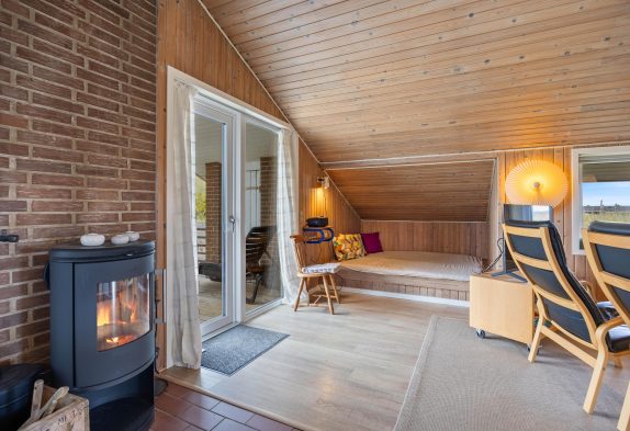 Im Wohnzimmer gibt es außerdem einen kleinen Alkoven, der Kinder und Erwachsene zu gemütlichem Entspannen einlädt. Im Wohnzimmer steht ein schöner Kaminofen, der Wärme an kalten Tagen verbreitet. Beim prasselnden Feuer des Kaminofens könnt ihr euch hier nach einem ausgiebigen Strandspaziergang wieder aufwärmen.