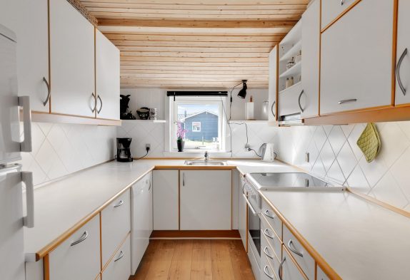 Die Küche sowie das Badezimmer sind klein, aber fein und praktisch eingerichtet. In der Küche findet ihr u.a. eine Kühlkombination, eine Mikrowelle und einen Geschirrspüler. Für Wärme im Ferienhaus sorgt nicht nur der Kaminofen, sondern auch eine energiesparende Wärmepumpe.