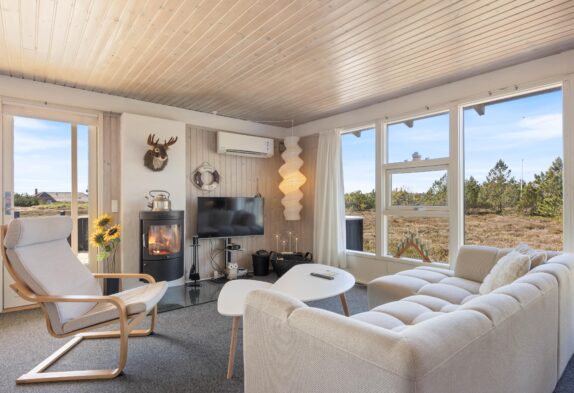 In diesem gemütlichen Ferienhaus in Blåbærheden 34 erwartet euch die typisch dänische Ferienhausatmosphäre, mit viel Helligkeit, Kamin und Sauna. Auf 83 qm finden bis zu 5 Personen Platz – ideal also für eine kleine Familie oder gemeinsam reisende Freunde. Auch euer Familienhund darf euch natürlich begleiten und lange Spaziergänge in der Heide, den Dünen und am Strand genießen.