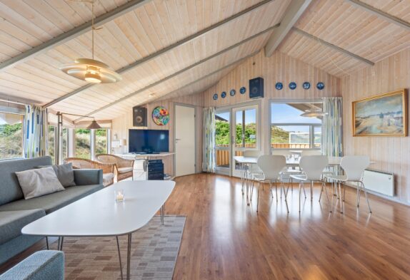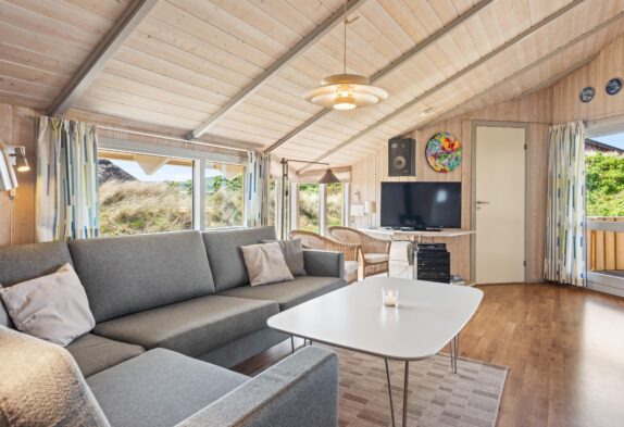 In diesem Ferienhaus werdet ihr mitten in der schönen Natur Dänemarks wohnen. Das Ferienhaus ist auf einem Naturgrundstück hoch gelegen und mit den schönen, möblierten und teilweise überdachten Terrassen ist es immer möglich, die Sonne, Natur und Seeluft zu genießen.