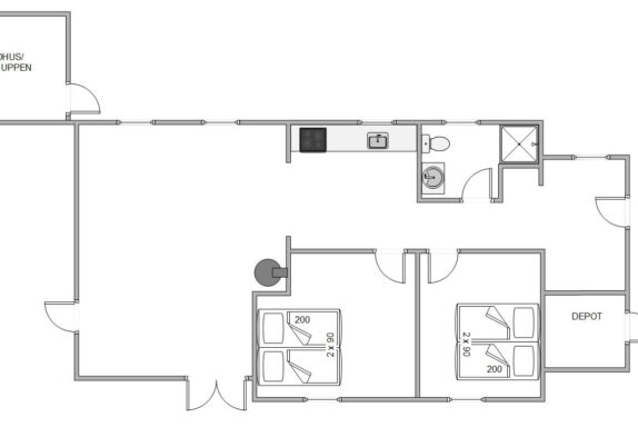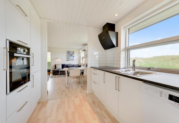 Die beiden hellen und großzügigen Schlafzimmer sind mit Doppelbetten und auch wie der Rest des Hauses mit Holzfussboden ausgestattet. Das Duschbad und die Küche bieten alles Notwendige für einen schönen Urlaub im Sommerhaus. So findet ihr in der Küche einen Geschirrspüler, eine Mikrowelle und eine Kühlkombination mit 65 l Gefrierfach.
