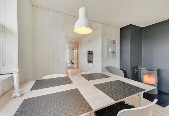Der helle und freundliche Wohnbereich ist Zentrum des Holzhauses und verfügt über einen Kaminofen und einer energiesparenden Wärmepumpe. Hier könnt ihr es euch an kühlen Herbsttagen vor dem Fernseher gemütlich machen oder ihr versammelt euch um den Esstisch und plant euren nächsten Urlaubstag. Um Musik zu streamen könnt ihr den im Haus vorhandenen Chromecast verwenden.