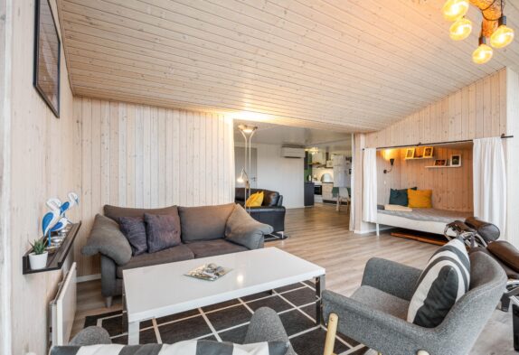 Im Bjerregårdsvej 454 erwartet euch ein Ferienhaus in schöner Lage nur etwa 150m vom Strand der dänischen Westküste entfernt. Zu dem Ferienhaus gehören ein großer Wintergarten mit schöner Aussicht auf die Landschaft und eine teilweise überdachte Terrasse. Mit Platz für 6 Personen könnt ihr in diesem geräumig eingerichteten Ferienhaus erholsame Ferientage verbringen.