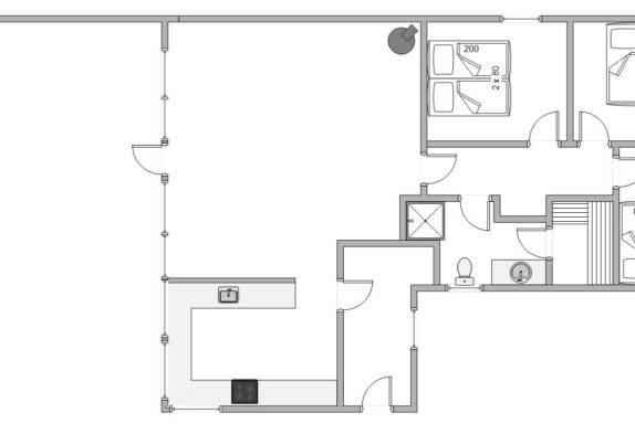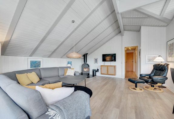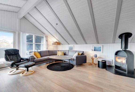 Das schöne große Badezimmer mit Dusche hat eine Fussbodenheizung und Zugang zur Sauna, die Bänke in zwei Höhen bietet. Die große Küche ist das Herz des Ferienhauses, mit offener Verbindung zum Wohnzimmer, ausgestattet mit Geschirrspüler, Mikrowelle und Kühlschrank mit kleinem Gefrierfach. Das Wohnzimmer bietet einen Fernseher, gemütliche Möbel und einen Kamin; ebenso ist gratis Internet per WLAN für euch vorhanden.