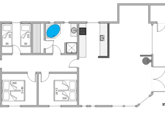 Es gibt drei gute Schlafzimmer in diesem Ferienhaus sowie eine Bettnische im Wohnraum, die z. B. für einen Mittagsschlaf gerne genutzt werden kann. Wenn euch nach Entspannung ist, steht das gut ausgestattete Badezimmer mit Whirlpool und Sauna bereit. Hier könnt ihr die Wärme der Sauna genießen oder im Whirlpool den Alltagsstress vergessen.