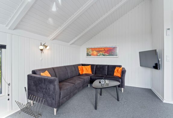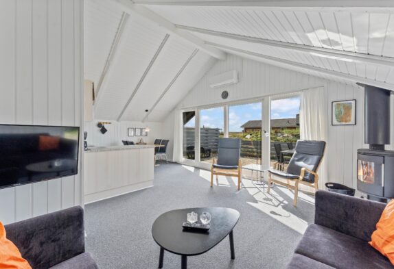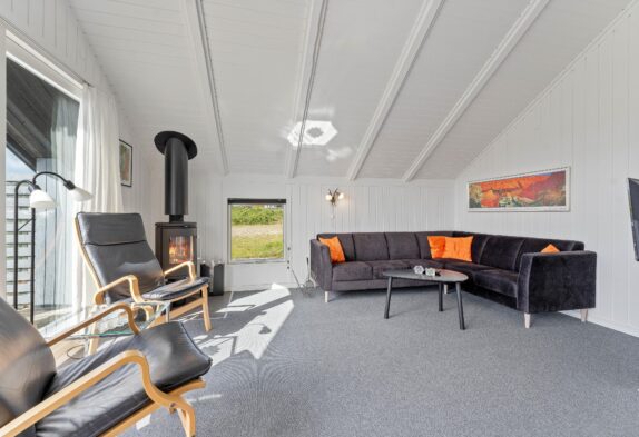 Dank der Fensterfront kommt viel natürliches Licht herein und ihr könnt den Ausblick in die Umgebung genießen. Schnappt euch euer Lieblingsbuch und lauscht dem Knistern des Kaminholzes oder kocht gemeinsam eine leckere Mahlzeit in der gut ausgestatteten Küche. Dank der Spülmaschine braucht ihr euch, um den Abwasch nicht zu sorgen und könnt den Urlaubstag bei einem Glas Wein ausklingen lassen.