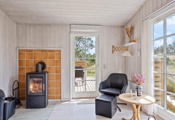 Die bodenhohen Fenster sorgen für einen schönen Lichteinfall und der zentral platzierte Kamin sorgt für kuschelige Wärme und lässt euch beim Knistern des Holzes richtig entspannen.