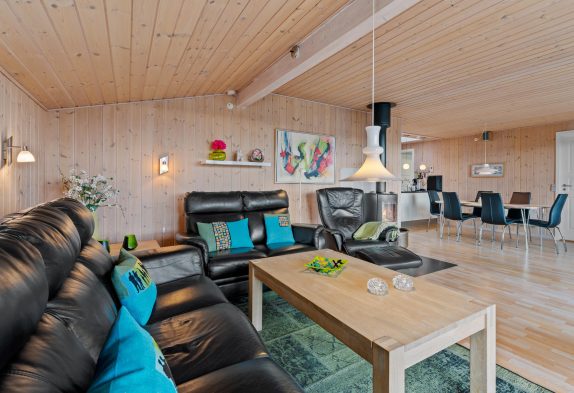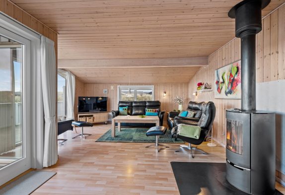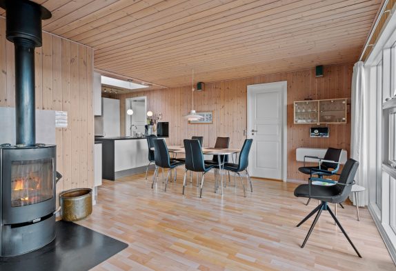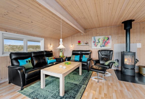 Der Wohnbereich ist gemütlich und mit bequemen Möbeln, Kaminofen, Flachbildschirm, DVD-Spieler und einem Radio mit CD-Spieler eingerichtet. In dem Ferienhaus gibt es auch einen kostenlosen Internetzugang und die energiesparende Wärmepumpe sorgt dafür, dass die Stromkosten nicht zu hoch werden und ihr eine angenehme Temperatur im Wohnbereich genießen könnt.