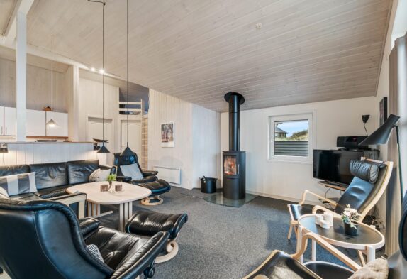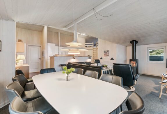 Sehr schön eingerichtetes Ferienhaus für eine Großfamilie. Gut ausgestattete Küche und großer, heller Ess- und Wohnbereich mit gediegenen Möbeln und Kaminofen, welcher zusammen mit dem TV und der Stereoanlage der Treffpunkt des Hauses ist. Für optimale Entspannung sorgt der große Whirlpool (mit Standwasser) für 6 Personen und die geräumige Sauna.