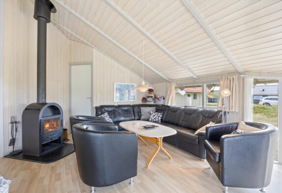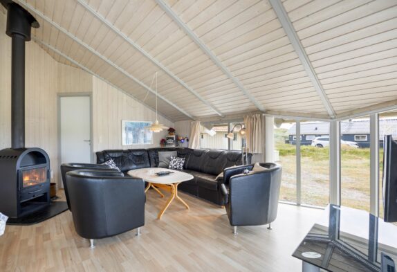 Ein großer Wohnbereich mit offener und gut ausgestatteter Küche bietet den perfekten Rahmen für einen entspannten Urlaub. Die helle und einladende Einrichtung mit guten Möbeln und viel natürlichem Licht und das knisternde Holz im Kaminofen schaffen eine gemütliche Atmosphäre. Hier können ihr es euch auf dem Sofa mit einem Kartenspiel gemütlich machen oder eine DVD schauen.
