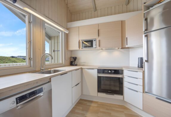 Euer Ferienhaus liegt ruhig im landschaftlich reizvollen Bjerregård – einem unserer beliebtesten Feriengebiete. Beim morgendlichen Spaziergang mit den Hunden könnt ihr euch im örtlichen Lebensmittelgeschäft frisch gebackene Brötchen holen. Auch der kilometerweite Sandstrand ist nur einen Steinwurf entfernt und lädt zu verschiedenen Aktivitäten ein.