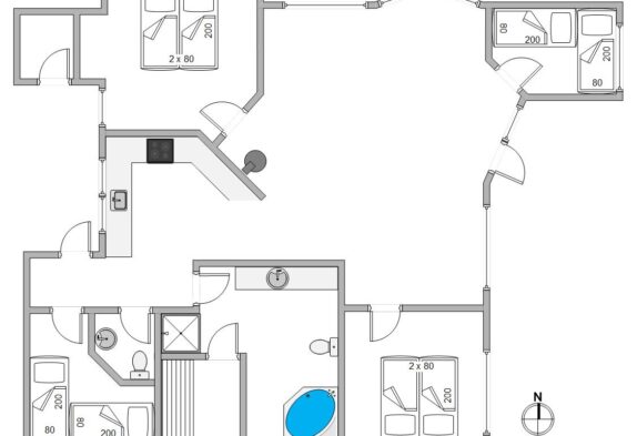 Das Ferienhaus bietet zudem vier gemütliche Schlafzimmer, die jeweils in einer eigenen Ecke des Ferienhauses platziert wurden. Zwei Zimmer sind mit Doppelbetten ausgestattet und die anderen beiden mit je zwei Einzelbetten. Hier könnt ihr euch ausschlafen und euch auf die spannenden Aktivitäten und Ausflüge eures Urlaubs vorbereiten.
