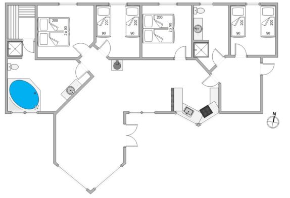 Mit einem großen Whirlpool-Badezimmer mit Sauna sorgt die moderne Ausstattung für gelungene und entspannte Ferien für bis zu 8 Personen. Das Ferienhaus wird mit einer energiesparenden Wärmepumpe / Klimananlage aufgewärmt btw. gekühlt, welche das Haus zusammen mit einer effektiven Isolierung äußerst energiesparend macht.
