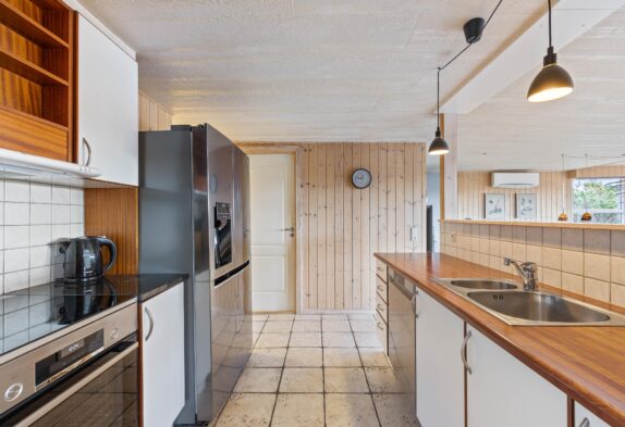 Auf dem großen, hügenligen Naturgrundstück wurde die teils überdachte Terrasse mit einem gemütlichen und gefliesten Terrassenecke erweitert, wo Ihr wirklich die Sonne und frische Meeresluft genießen könnt, wärend eure Kinder im Sandkasten spielen oder schaukeln.