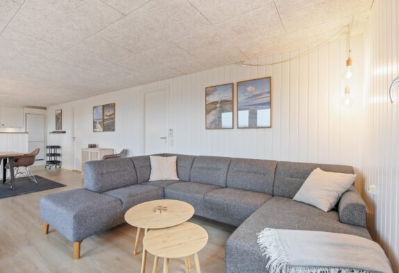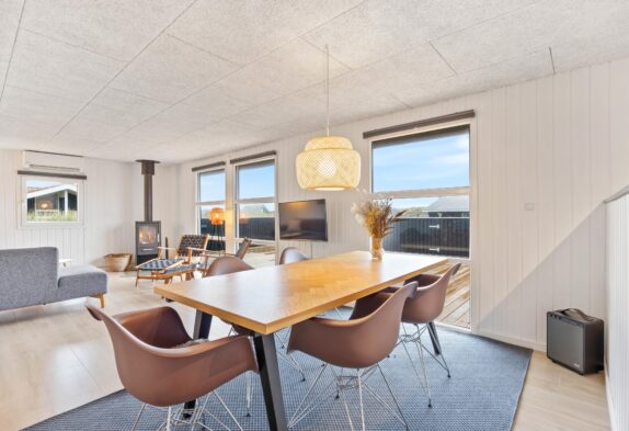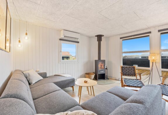 Beim Betreten des Ferienhauses empfängt euch der großzügige Wohnbereich, der den typisch dänischen Ferienhauscharme versprüht. Die zahlreichen Fenster lassen viel Licht herein und ermöglichen einen Ausblick in die euch umgebende Dünenlandschaft. Auf dem Sofa könnt ihr es euch beim Fernsehen und beim knisternden Kaminfeuer gut gehen lassen und den Alltagsstress vergessen.