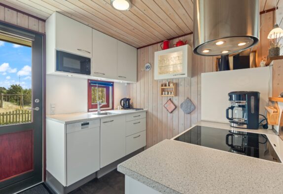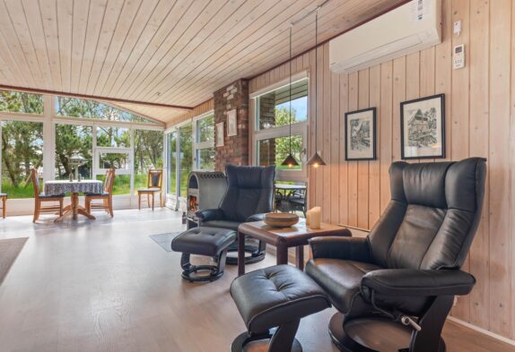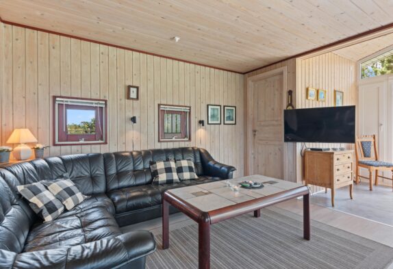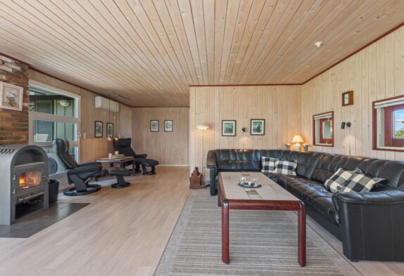 Im Bjerregårdsvej 11 A empfängt euch ein Ferienhaus im typischen skandinavischen Stil, mit holzverkleideten Wänden im Außen- und Innenbereich. Im Wohnraum, der zugleich das Herzstück des Ferienhauses bildet, gibt es zahlreiche Fenster, die viel natürliches Licht hereinlassen. Zusammen mit den holzgetäfelten Wänden und Decken entsteht eine gemütliche Atmosphäre, in der ihr euch direkt wohlfühlen werdet.