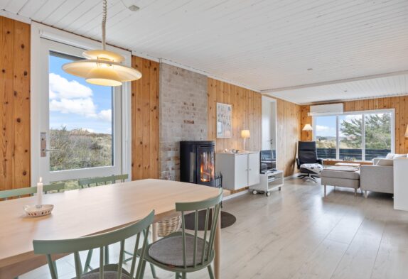 Euer Ferienhaus ist ein schlichtes und gemütlich eingerichtetes Ferienhaus mit einem Wintergarten, von dem ihr den Blick auf die Dünenlandschaft habt. Das Wohnzimmer verfügt über einen Fernseher, einen DVD- und CD-Player sowie einen Kaminofen. Am Feuer könnt ihr es euch gemeinsam bequem machen und Zeit als Familie verbringen.