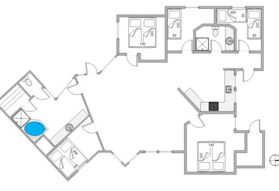 Beide Badezimmer sind natürlich mit einer Fußbodenheizung versehen, damit ihr nach dem Duschen keine kalten Füße bekommt. Praktischerweise gibt es auch eine Waschmaschine und einen Trockner vor Ort, so könnt ihr stets für frische Handtücher sorgen. Für eine erholsame Nachtruhe stehen in fünf Schlafzimmern insgesamt zwei Doppel- und vier Einzelbetten bereit. So könnt ihr mit Energie in den neuen Urlaubstag starten.