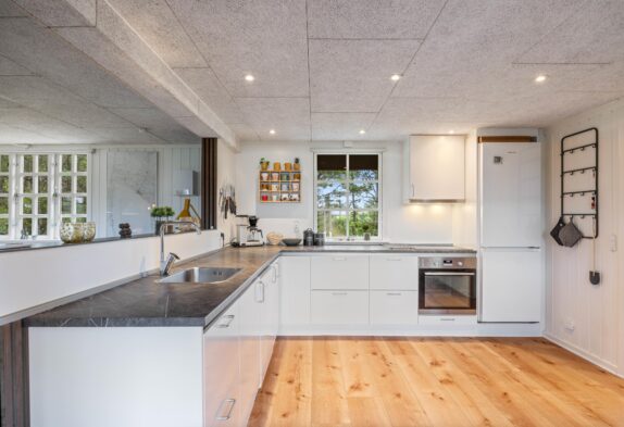 Im Zentrum des Ferienhauses erwartet euch ein liebevoll und gemütlich eingerichteter Wohnraum, wo ihr euch in einer bequemen Sofaecke bei dem neusten Lieblingskrimi entspannen könnt. Nebenan liegt die große, offene Küche des Ferienhauses, in welcher ihr leckere Rezepte probieren könnt. Für ein gemeinsames Abendessen mit der ganzen Familie findet ihr Platz am großen Esstisch, direkt an der Küche gelegen. Wie wäre es danach mit einem entspannten Filmabend am wärmenden Feuer des Ofens? Hierfür steht euch auch Chromecast im Ferienhaus zur Verfügung. Auch die Sauna bietet Entspannung. Hier könnt ihr nach einem langen Stranspaziergang eure Muskeln wieder aufwärmen.