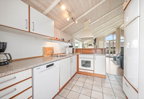 Die offene, vollständig ausgestattete Küche fügt sich harmonisch in den Wohnbereich ein. Hier stehen euch alle Annehmlichkeiten zur Verfügung – von der praktischen Spülmaschine bis hin zu ausreichend Platz für gemeinsame Mahlzeiten.