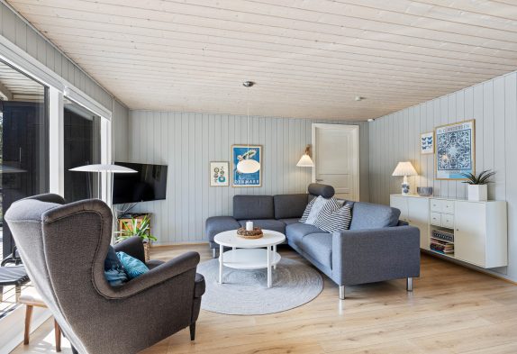Im Zentrum dieses gemütlichen Ferienhauses erwartet euch ein liebevoll eingerichteter Wohnbereich mit einer bequemen Sofaecke zum Wohlfühlen und Entspannen. Ein komfortabler Sessel direkt an der großen Fensterfront des Ferienhauses lädt ein, bei einer frischgebrühten Tasse Kaffee den großartigen Ausblick in den naturbelassenen Garten zu genießen.