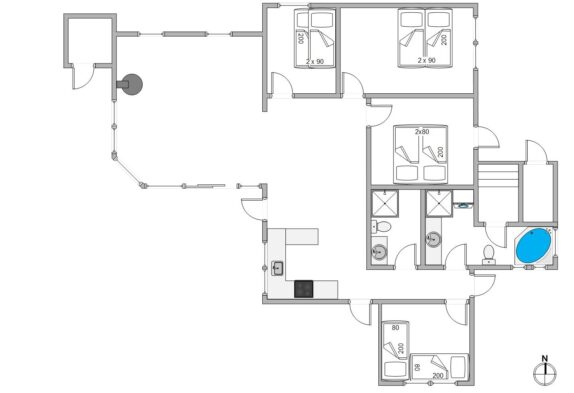 In der letzten Dünenreihe, direkt am Strand, liegt dieses wunderschöne Ferienhaus auf einem großen Naturgrundstück im Bjerregårdsvej 384. Es ist sehr schön und geschmackvoll eingerichtet, besitzt große und helle Räume und ist wunderschön möbliert mit allergikerfreundlichen Materialien. Zudem gibt es einen tollen Whirlpool für 5 Personen mit niedrigem Energieverbrauch für erholsame Wellnessabende.