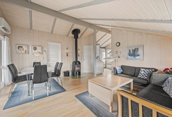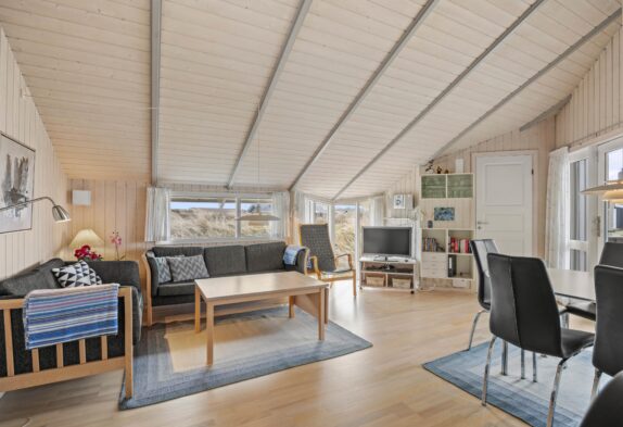 Ein klassisches Ferienhaus in hellen Farben, das zu gemütlichen Momenten mit Familie und Freunden einlädt. Es bietet Platz für bis zu sechs Personen, und 2 Hunde sind hier herzlich willkommen.