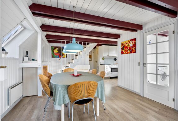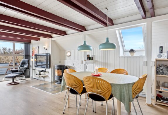 Im Inneren eures Ferienhauses im Nygårdsvej 18 erwartet euch eine helle und einladende Atmosphäre, die den perfekten Rahmen für gemütliche Stunden zusammen schafft. Der Wohnbereich ist das Herz des Ferienhauses, in dem der warme Kaminofen zu einer angenehmen Atmosphäre beiträgt, besonders an kühlen Abenden.