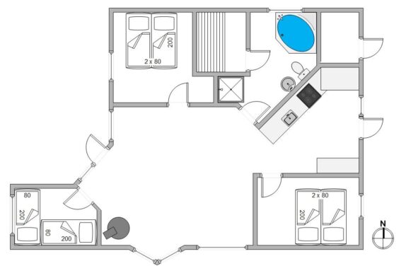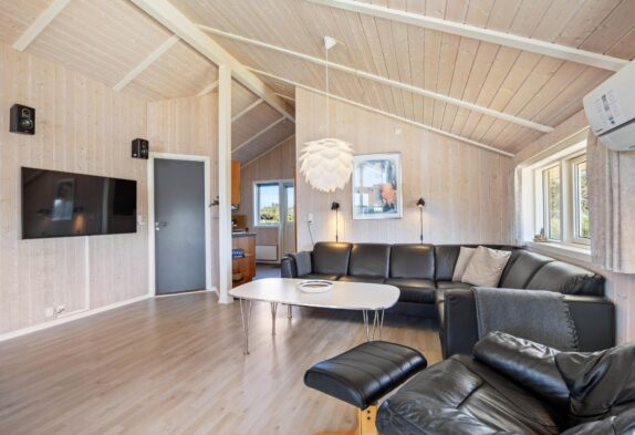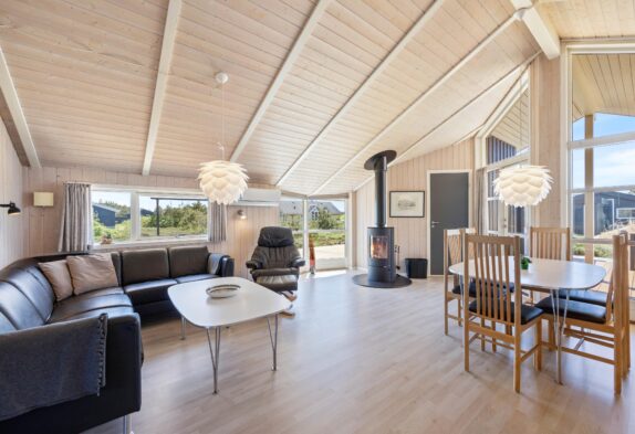 In diesem tollen Ferienhaus findet ihr drei separate Schlafzimmer, ein großes Badezimmer, eine funktionelle Küche und ein schönes Wohnzimmer. Zwei der Zimmer sind mit Doppeltbett und das dritte mit 2 Einzelbetten ausgestattet. Die Holzwände und firsthohe Holzdecken sorgen für eine gemütliche Atmosphäre.