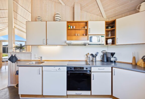 Die Küche des Ferienhauses ist praktisch ausgestattet mit u.a. Mikrowelle, Geschirrspüler und Gefrierfach (10 l). In dem geräumigen und gut möblierten Wohnzimmer findet ihr einen wärmenden Holzofen und einen Flachbildschirmfernseher für gemütliche Filmabende mit der Familie. Ferner bietet das Ferienhaus gratis drahtloses Internet. Somit könnt ihr die Tageszeitung online lesen und Ausflüge für die nächsten Tage planen.