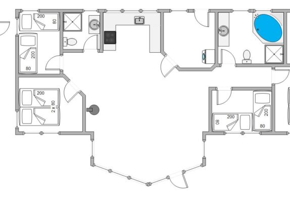 Beide Badezimmer verfügen über WC, Dusche und Fußbodenheizung. Im größeren Badezimmer findet ihr den Whirlpool, der sich perfekt zum Entspannen nach einem langen Tag in der Natur eignet. Das Ferienhaus ist außerdem mit einer Waschmaschine, einem Wäschetrockner und einem Geschirrspüler ausgestattet, sodass ihr immer für saubere und trockene Kleidung sorgen könnt und den Abwasch nicht selbst erledigen müsst.