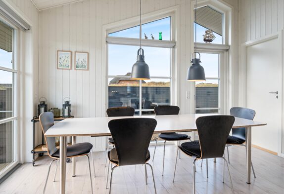 Die zum Ferienhaus gehörende, schöne Terrasse ist geschlossen und hat mehrere abgeschirmte Bereiche, sodass ihr fast immer Windschutz finden könnt. Die Terrasse ist an den Enden des Ferienhauses überdacht, was perfekt für schöne Grillabende ist.